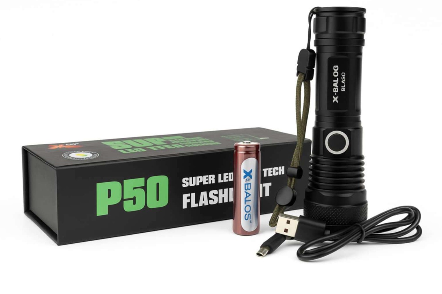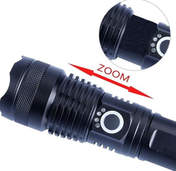 Επαναφορτιζόμενος φακός αλουμινίου με LED XHP50.2, 5 λειτουργίες φωτισμού, ρύθμιση zoom και αυτονομία έως 8 ώρες. Ιδανικός για εξωτερικές δραστηριότητες.