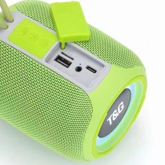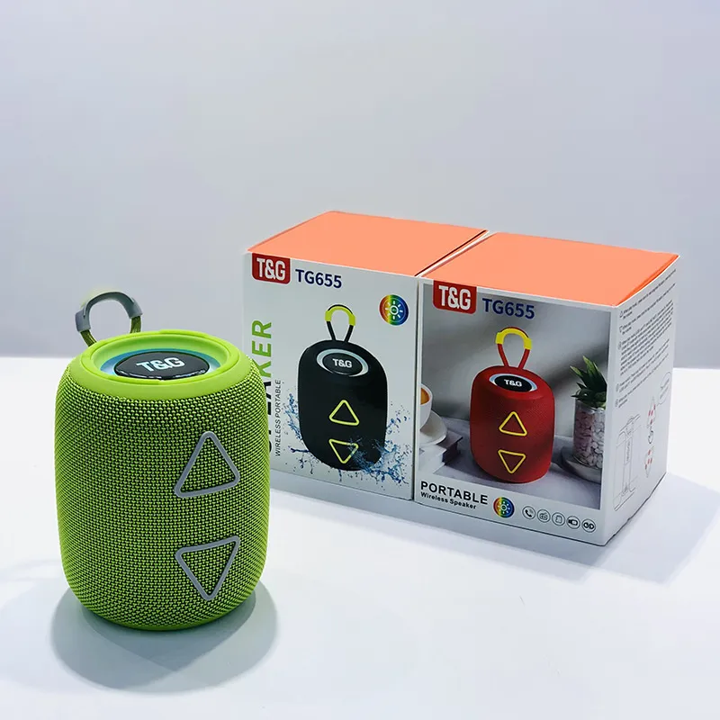 Ασύρματο ηχείο T&G TG655 με Bluetooth, υποδοχές USB/TF/AUX, ενσωματωμένη μπαταρία και ανθεκτική υφασμάτινη επένδυση.
