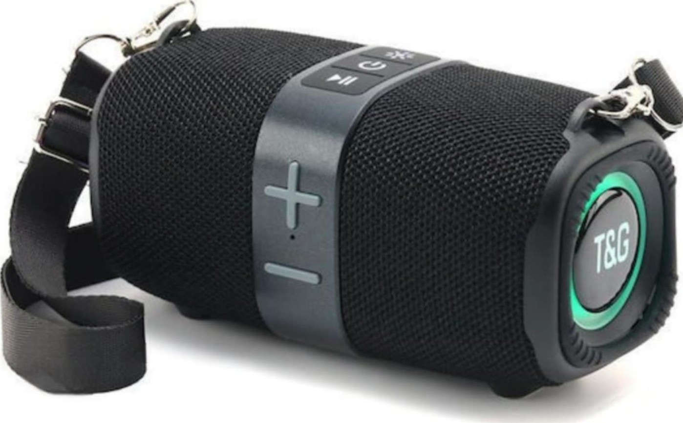Ηχείο Bluetooth TG-667 10W με φωτιζόμενα πλαϊνά, USB/TF/AUX/FM, πλήκτρα ελέγχου και ιμάντα μεταφοράς.