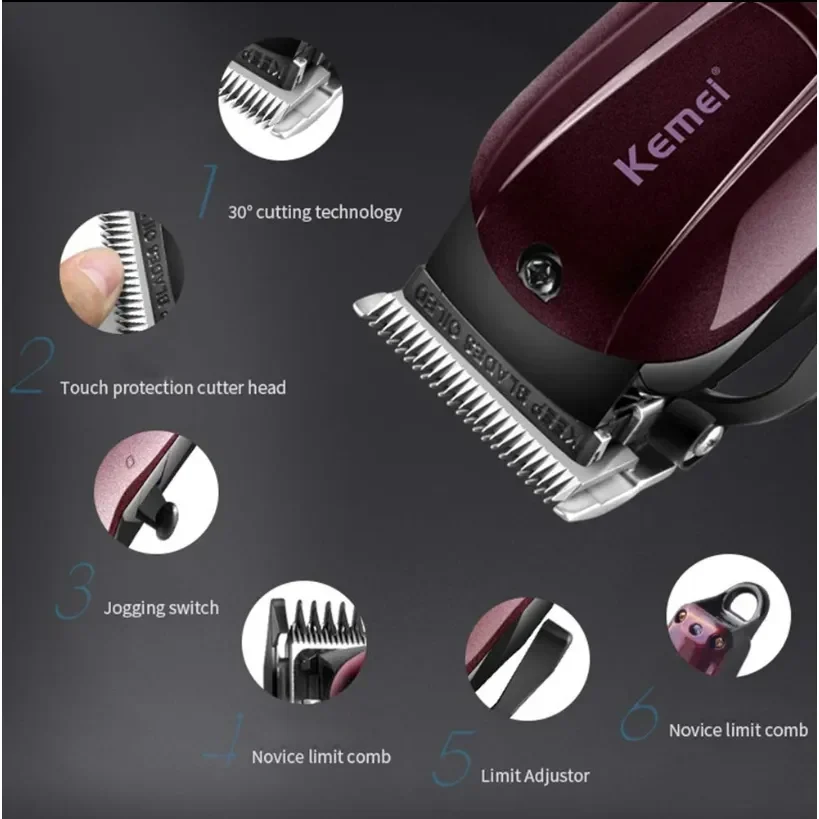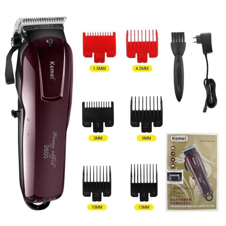 Η Kemei KM-2600 είναι μια επαγγελματική κουρευτική μηχανή σχεδιασμένη για αντοχή, ακρίβεια και ευκολία στη χρήση. Διαθέτει λεπίδες από ανοξείδωτο ατσάλι υψηλής ποιότητας, 6 χτενάκια (1.5mm έως 13mm), ισχυρό μοτέρ και επαναφορτιζόμενη μπαταρία μεγάλης διάρκειας.