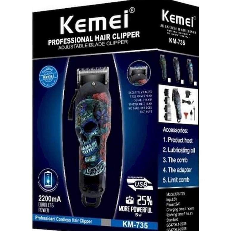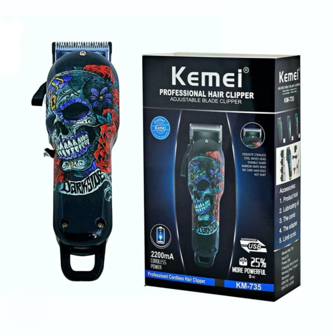 Η Kemei KM-735 Darkside Edition είναι μια επαγγελματική κουρευτική μηχανή με ισχυρό μοτέρ και μπαταρία μεγάλης διάρκειας. Ο εντυπωσιακός της σχεδιασμός την κάνει να ξεχωρίζει, ενώ οι λεπίδες από ανοξείδωτο ατσάλι, η ρυθμιζόμενη λεπίδα, και τα 5 χτενάκια προσφέρουν ακριβή και άνετη περιποίηση.