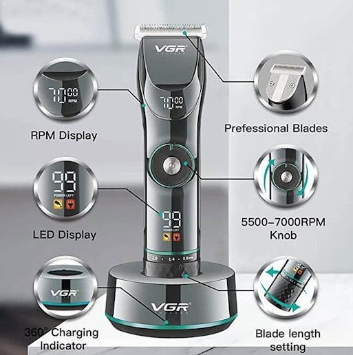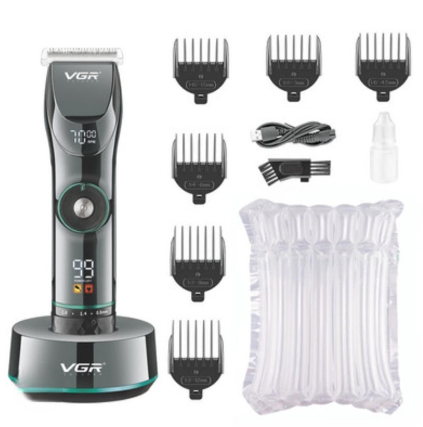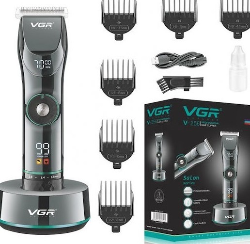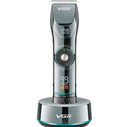 Η VGR κουρευτική μηχανή είναι μια υψηλής ποιότητας επαναφορτιζόμενη συσκευή, ιδανική για κάθε τύπο κουρέματος ή trimming γενειάδας. Διαθέτει έγχρωμη οθόνη LED, ρυθμιζόμενη λεπίδα, 6 χτενάκια διαφορετικού μήκους και μοντέρνα βάση φόρτισης για πρακτική αποθήκευση και σταθερή φόρτιση.