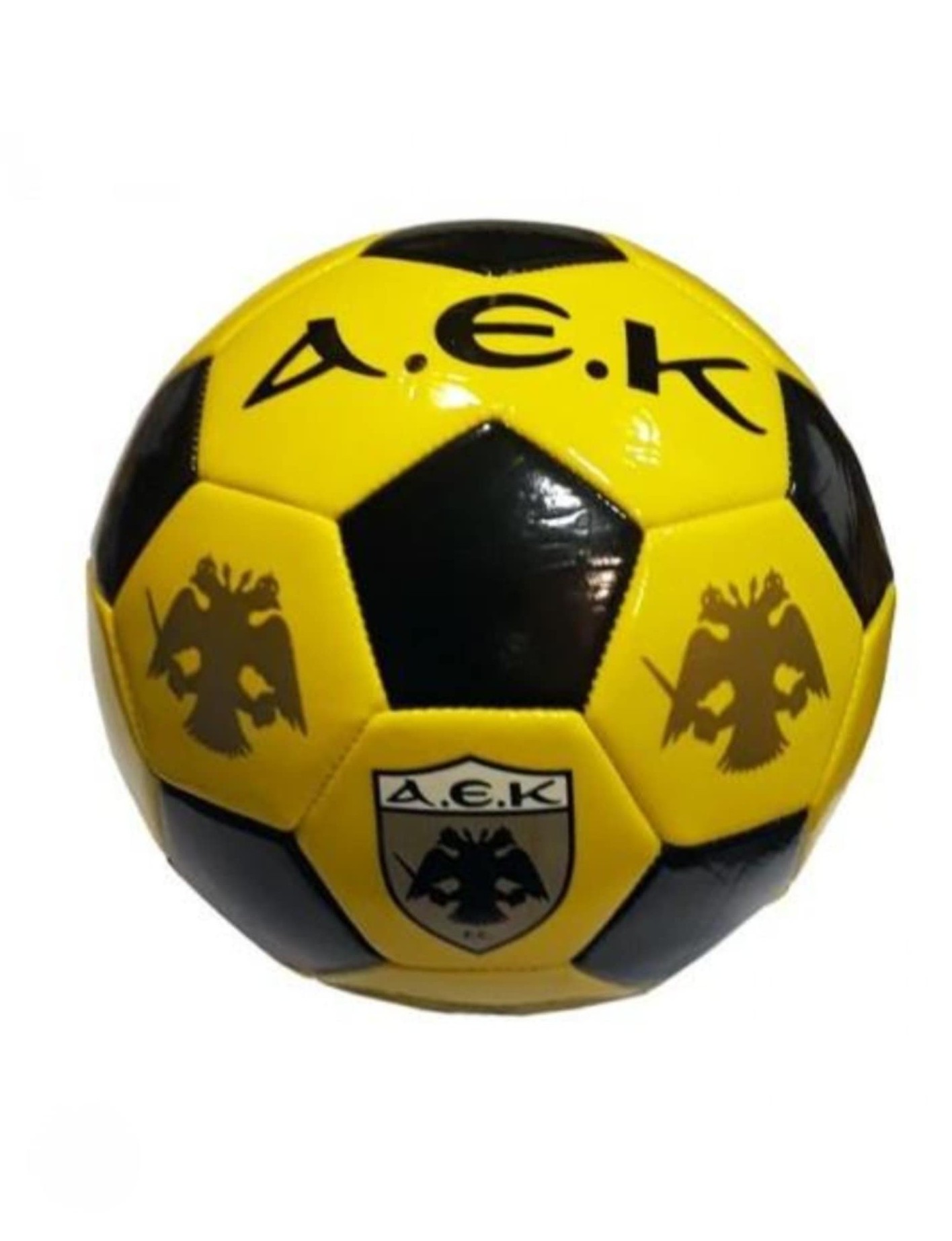 Δερμάτινη μπάλα ποδοσφαίρου No5 με λογότυπο ΑΕΚ και υψηλή ανθεκτικότητα για κάθε χρήση.