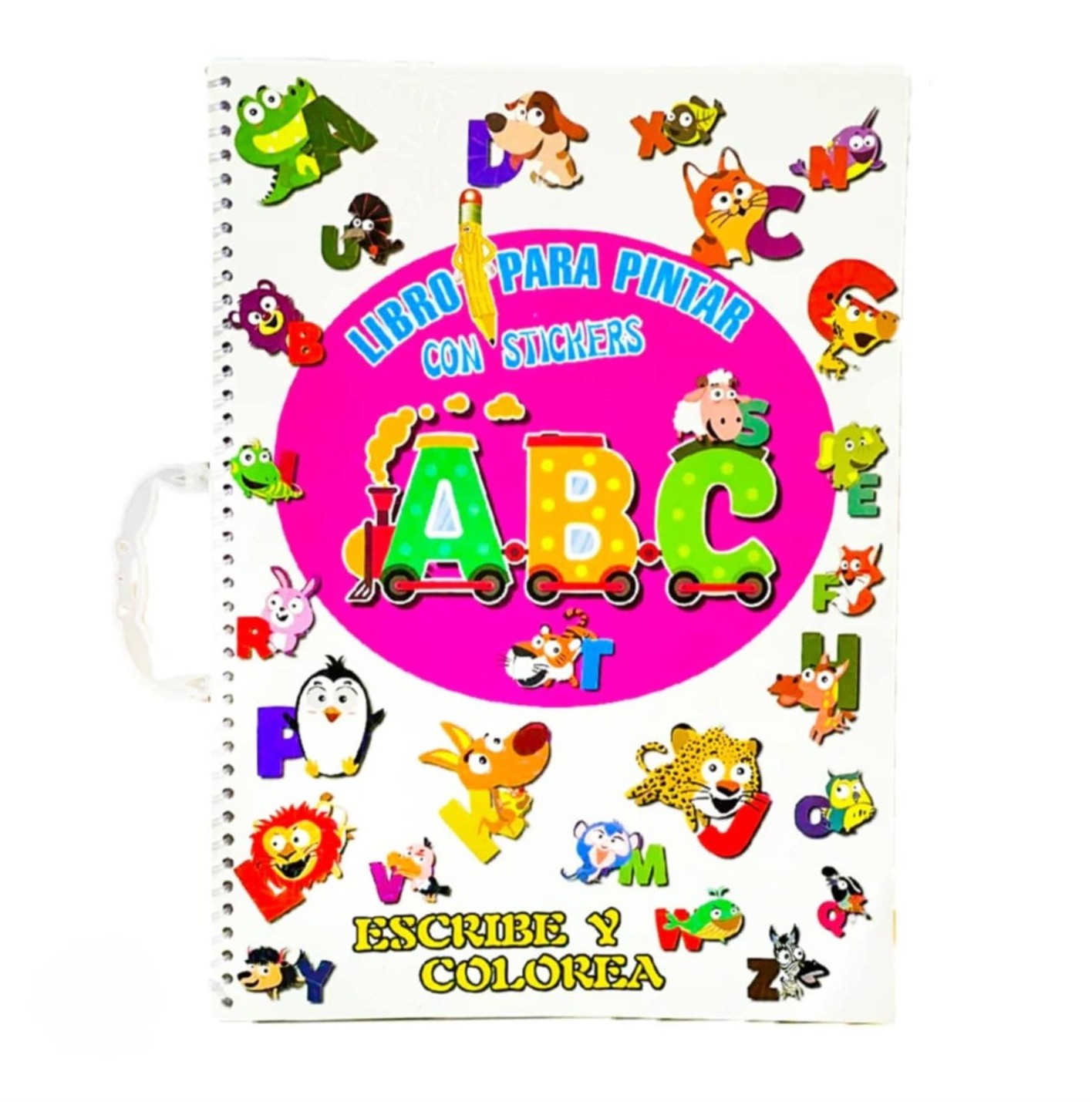 Βιβλίο ζωγραφικής ABC 16 σελίδων με αυτοκόλλητα, σπιράλ δέσιμο και χερούλι.