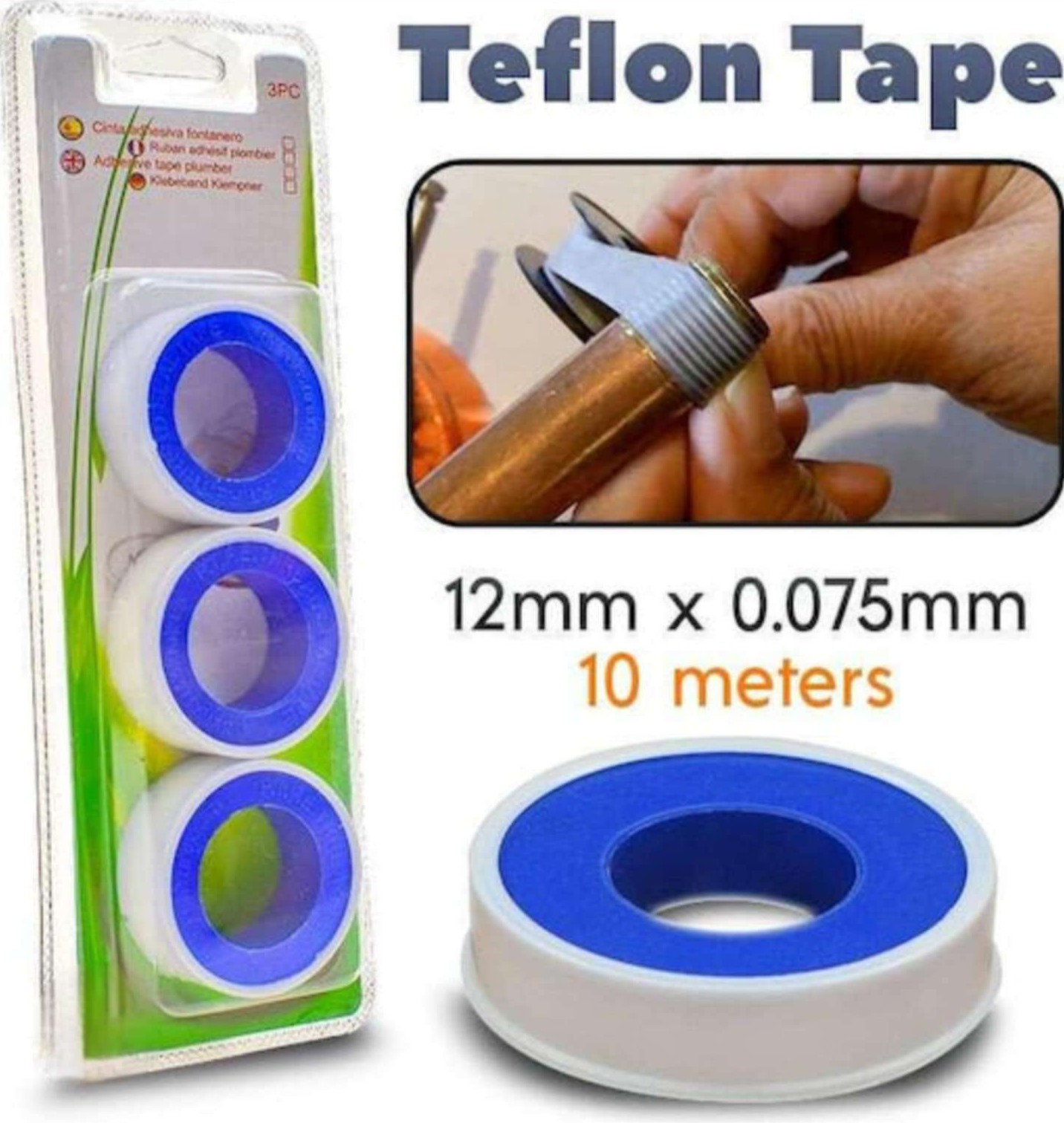 Σετ 3 ταινιών τεφλόν διαστάσεων 12mm x 10m για υδραυλική στεγανοποίηση.